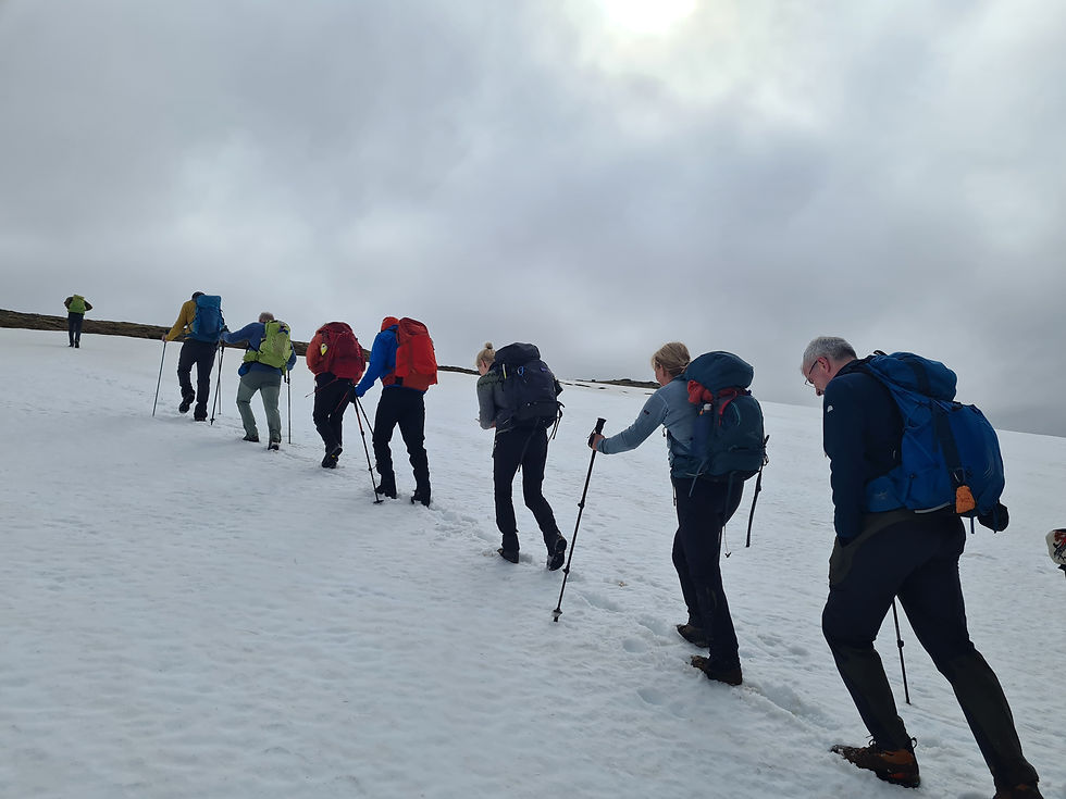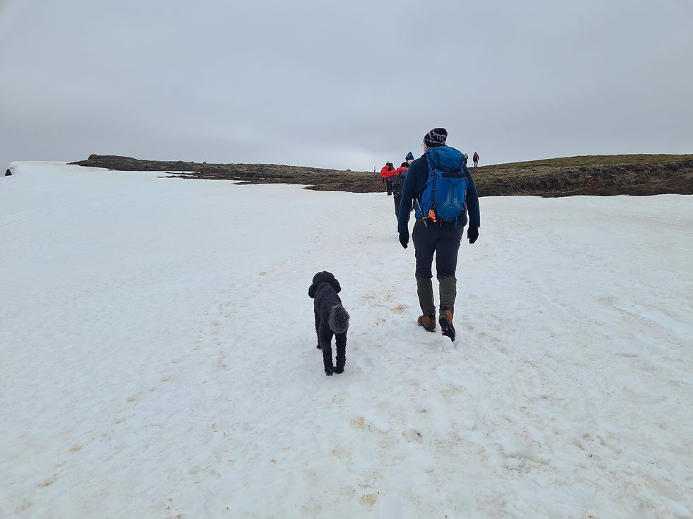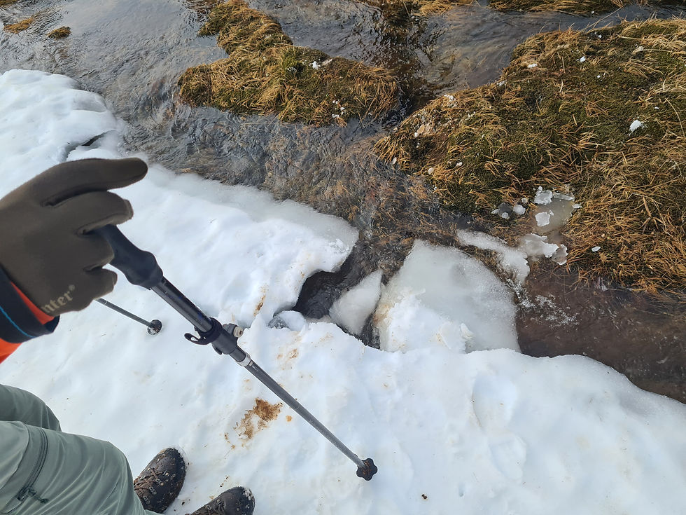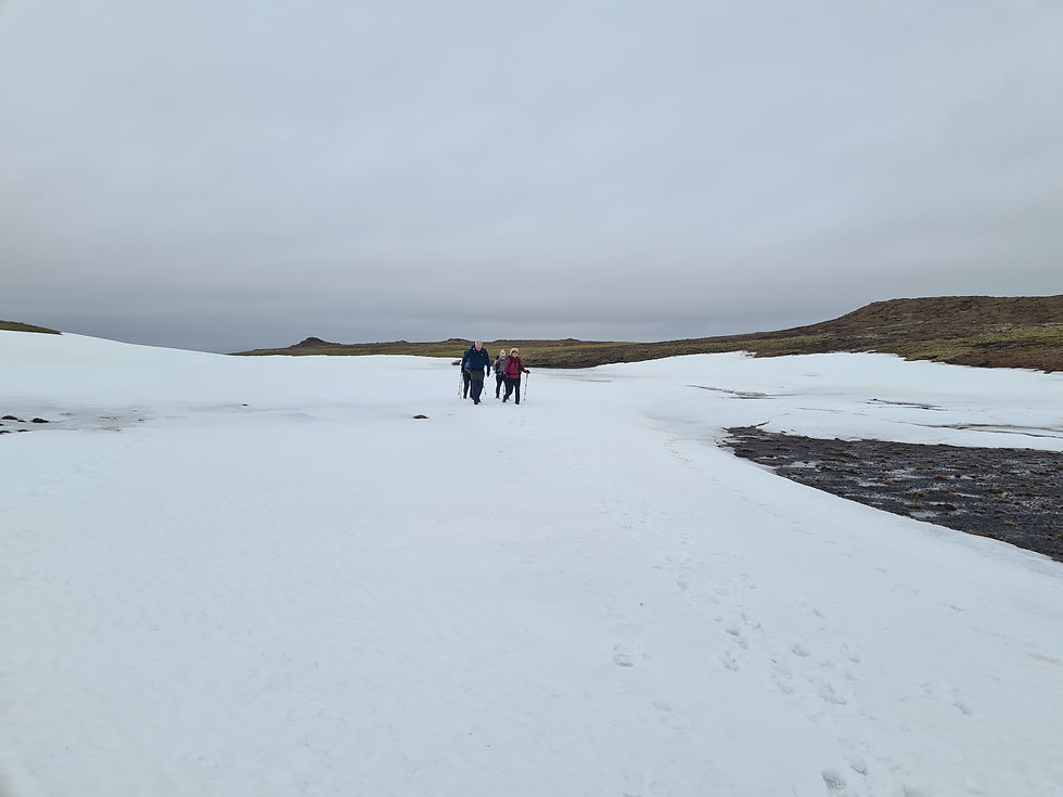 Lækurinn sem Bára þjálfari áði við í iðandi sumarblíðu í júní í fyrra á þessari sömu leið... var allur undir snjó...