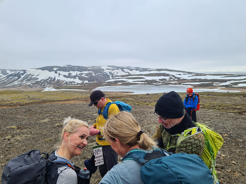 Jæja... síðasti tindurinn af níu... allir orðnir þreyttir... en mjög stutt eftir... þjálfari giskaði á 45 mínútur... Linda á klukkutíma... var ekki oddný með í þessu veðmáli ? ... Jón Odds á 1,5 klukkustund... og Jón vann veðmálið !
