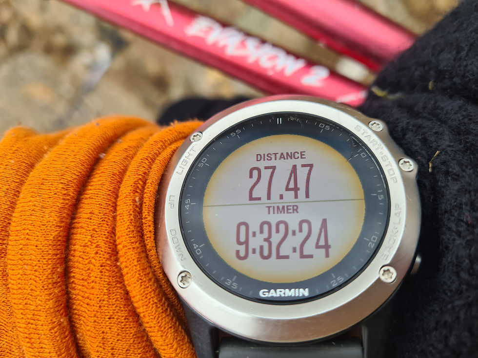 En við vorum himinlifandi og sigurinn var algjör ! ... alls 29,9 - 33,1 km eftir tækjum... og við létum 31,6 km ráða á 10:39 - 10:41 klst. upp í 498 m hæstu hæð meða lls 1.478 m hækkun úr 99 m upphafshæð...