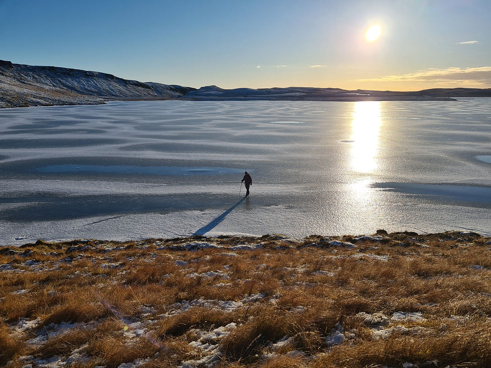 Davíð var sá eini sem gekk út á vatnið... það var vel frosið... menn voru orðnir þreyttir og vildu fara að snúa í bílana enda vorum við komin fram yfir áætlaða vegalengd og tímalengd...